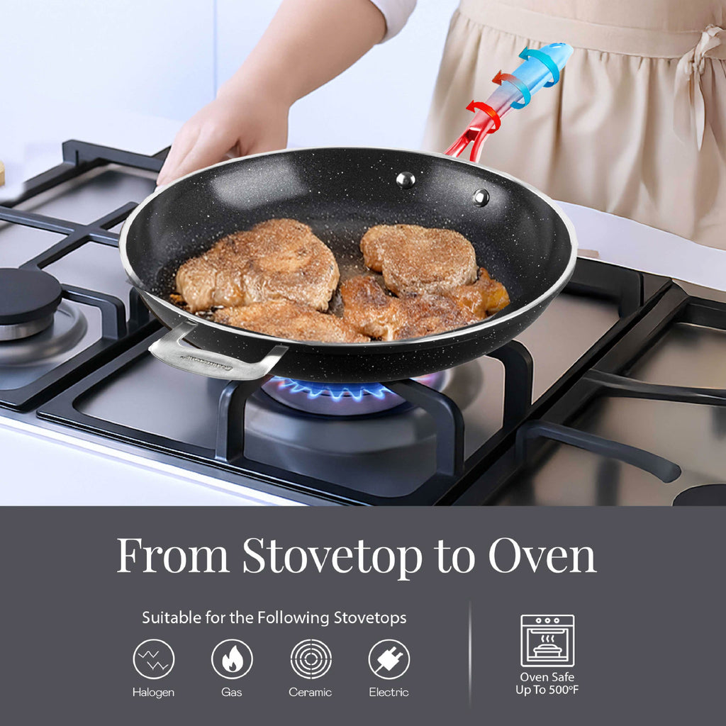 Versatile Use Cases: Compatible with halogen, gas, electric, and ceramic stovetops and oven safe to 500°F: ideal for searing steaks, sautéing vegetables, frying eggs, simmering sauces, and finishing dishes in the oven.