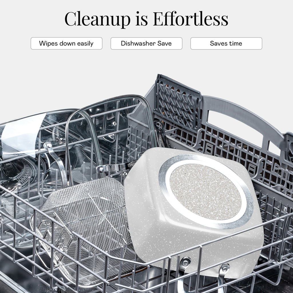 - Safe, Nontoxic and Dishwasher Friendly: Made without PFOA, PTFE, lead, or cadmium for peace of mind. This eco-conscious set is 100% nontoxic and safe for the whole family—and cleans up easily in the dishwasher.