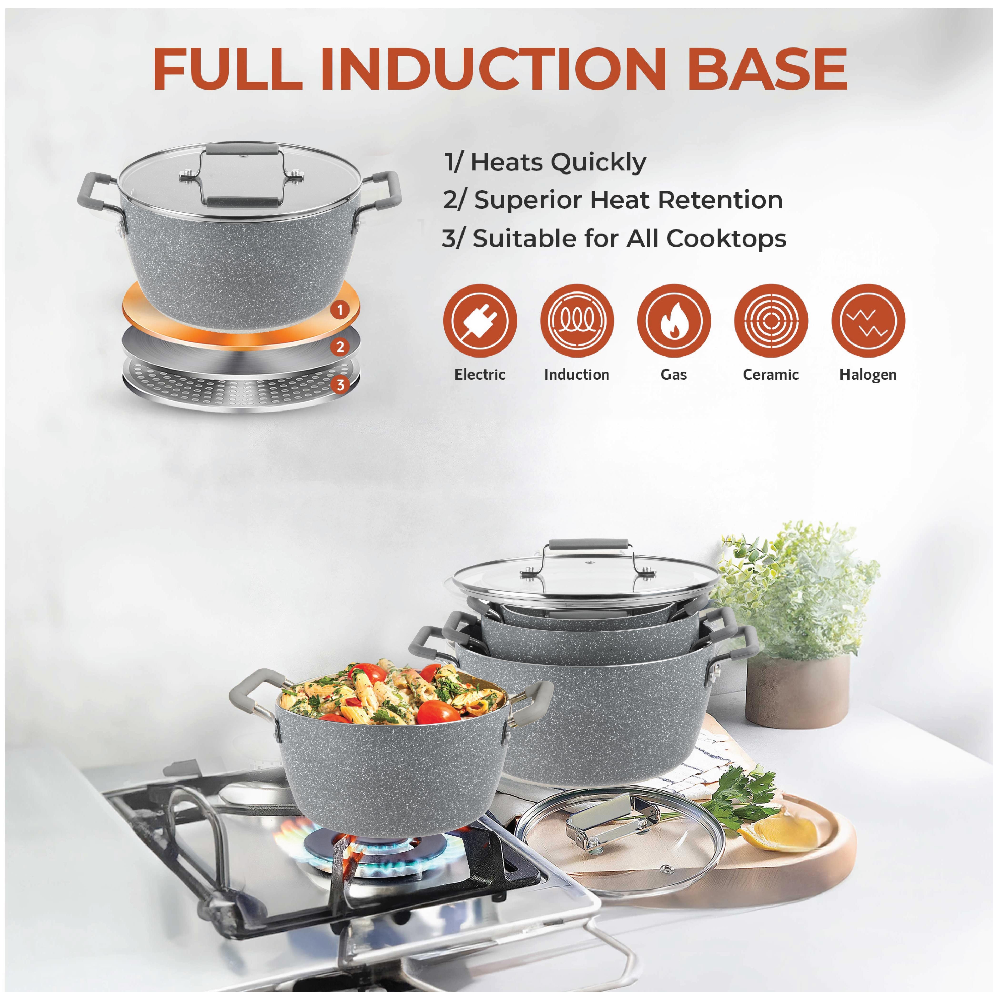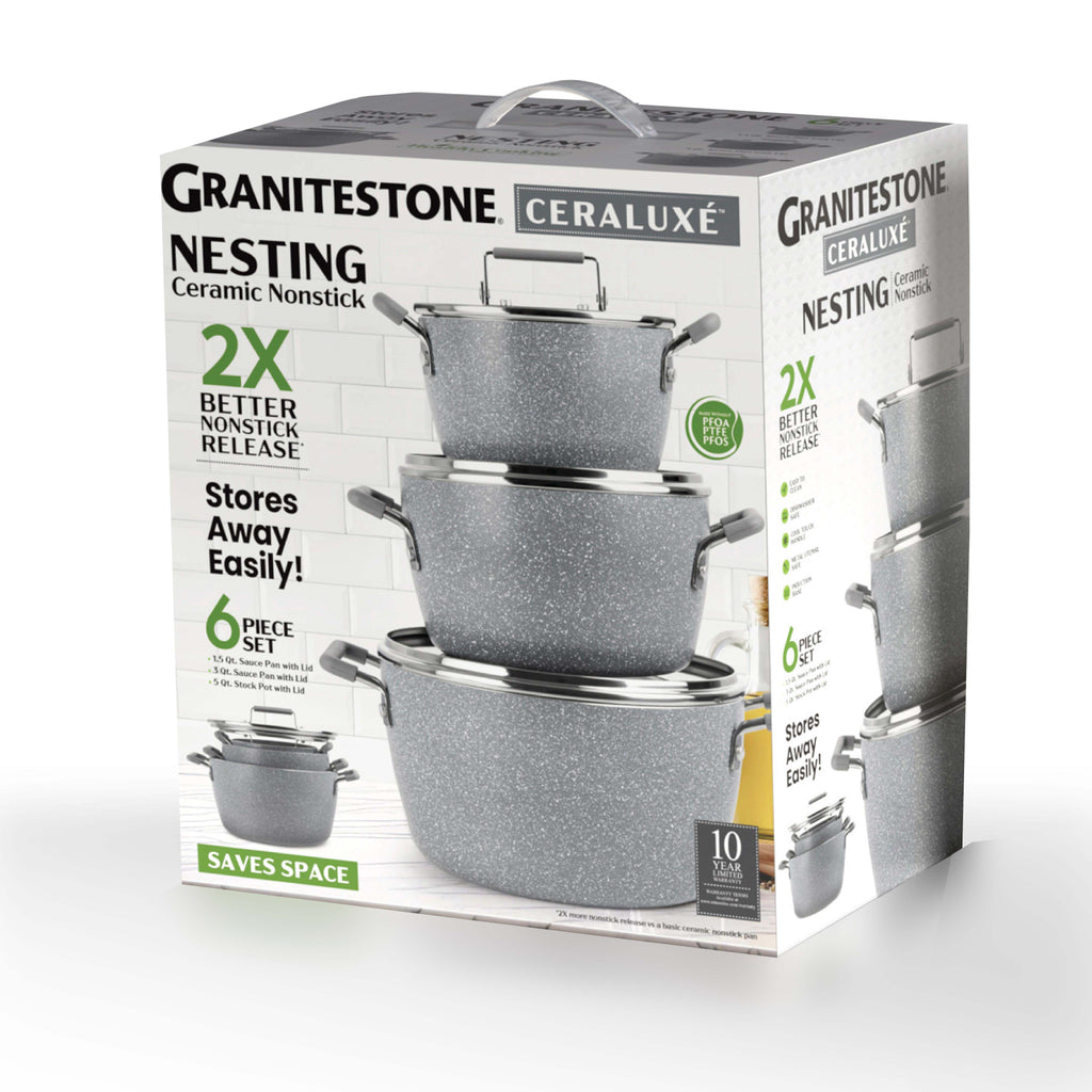 Granitestone Ceraluxe 6 Piece Grey Speckle Nesting Stock Pots Set